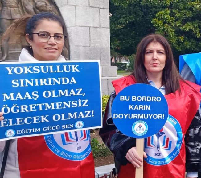 Hopalı, “Eğitim çalışanları her geçen yıl daha da fakirleşiyor ve emeğimizin karşılığını alamıyoruz. Yılın başında yapılan %12’lik maaş artışı ise, mevcut kayıplarımızı karşılamaktan uzak,” dedi. Açıklama sırasında, eğitim çalışanlarının talepleri de net bir şekilde dile getirildi: “Eğitim çalışanlarının maaşları yoksulluk sınırının üzerinde olmalı, vergi dilimleri sabitlenmeli ve alım gücünü artıracak düzenlemeler yapılmalıdır.”