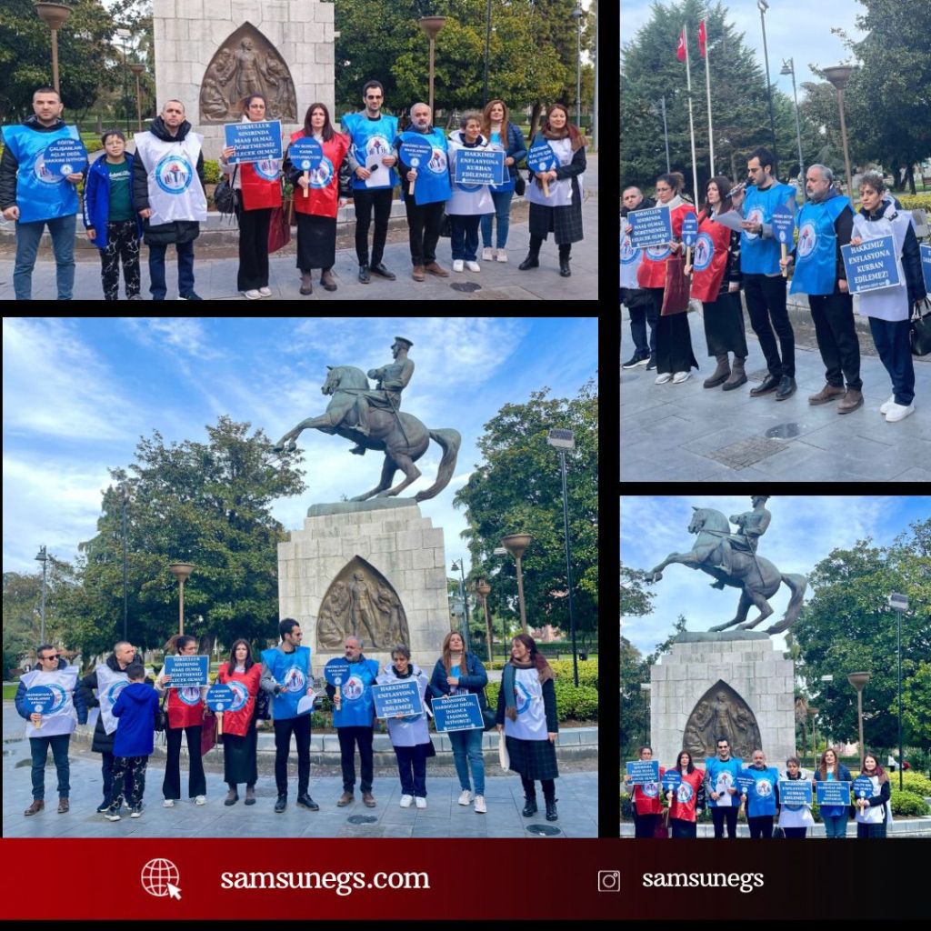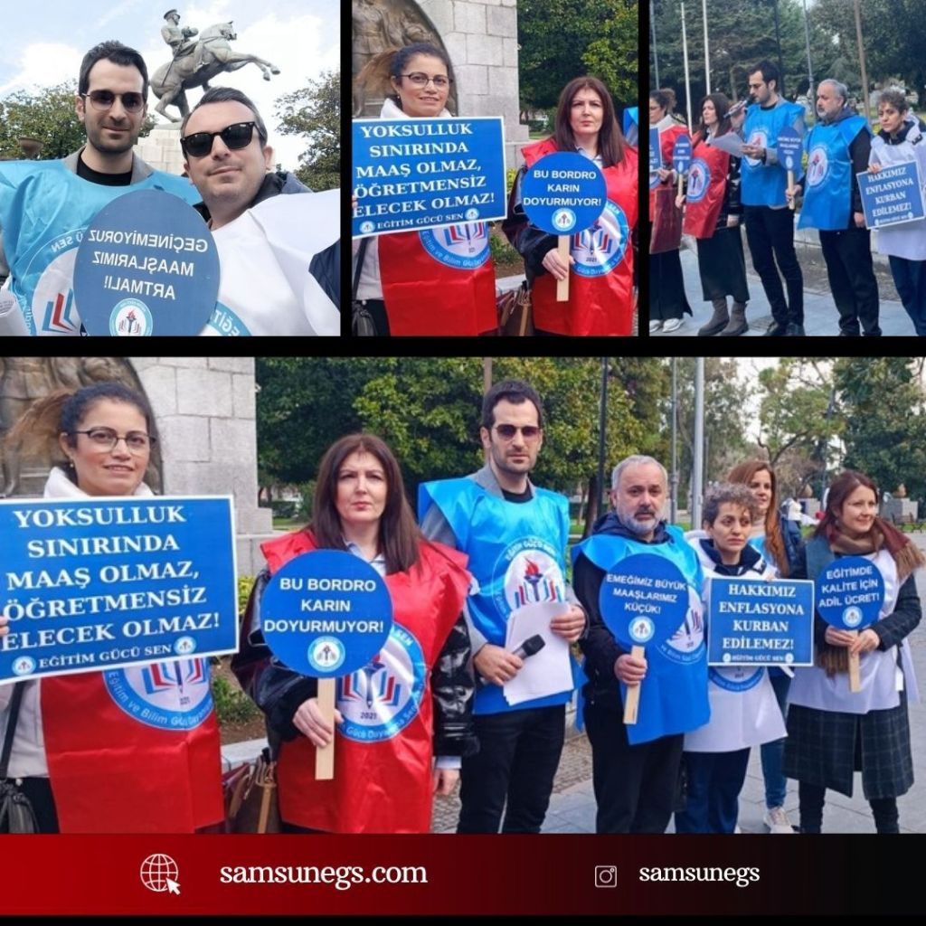 Eğitim Gücü Sen Samsun Şubesi olarak, eğitim çalışanlarının ekonomik sıkıntılarına dikkat çekmek için basın açıklaması düzenledik. Şube Başkanımız Emrah Hopalı, son açıklanan verilere göre yoksulluk sınırının 66.000 TL’yi aştığını ancak yeni başlayan bir öğretmenin maaşının 39.000 TL olduğunu belirtti. Öğretmenlerin maaşlarıyla kirasını ödedikten sonra geçim sıkıntısı yaşadığını ve vergi dilimlerinin maaşları daha da düşürdüğünü vurguladı.