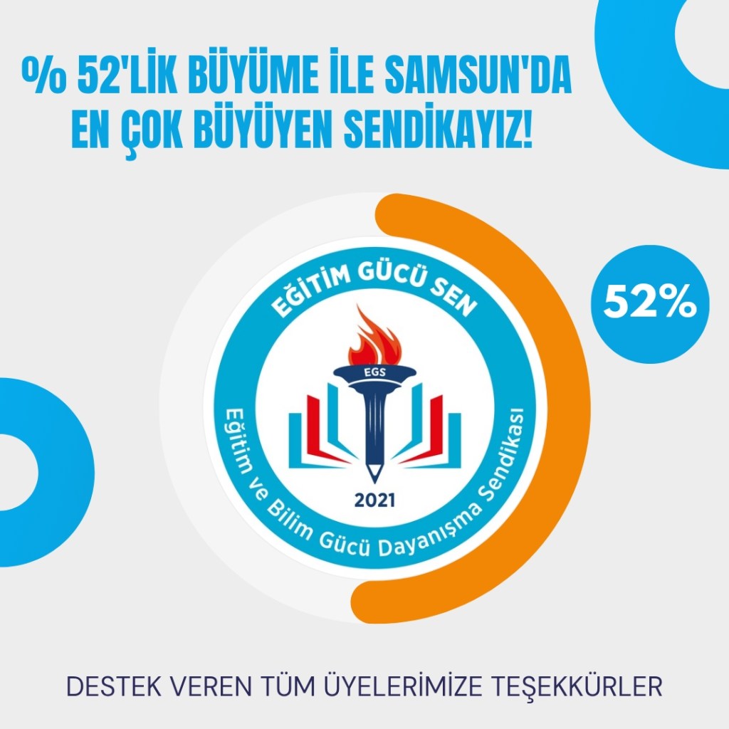 Eğitim ve Bilim Gücü Dayanışma Sendikası (Eğitim Gücü Sen) Samsun Şubesi, 2024 yılı Mayıs ayına göre üye sayısını %52 oranında artırarak kentteki en çok büyüyen sendika olmuştur. Bu büyüme; apolitik, tarafsız ve yalnızca eğitim çalışanlarının haklarını önceleyen sendikal anlayışın sahadaki yansımasıdır.